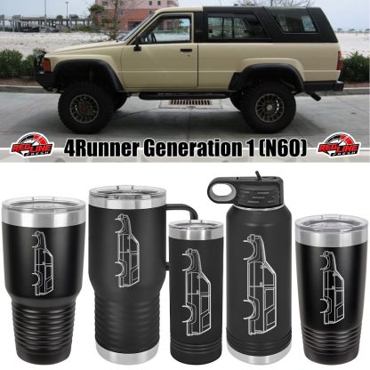 Elevate your daily hydration experience with our meticulously crafted 4Runner Generation 1 (N60) Silhouette drinkware collection. Each piece is laser engraved to order, with the car silhouette etched onto black tumblers, creating a stunning silver metal color contrast that beautifully represents your connection to your 4Runner Generation 1 (N60).