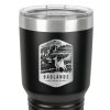 Elevate your daily hydration experience with the striking Badlands Park drinkware collection. Each piece is meticulously crafted and laser engraved to order, with the shield logo etched onto black tumblers, creating a captivating silver metal color contrast that beautifully represents the rugged beauty of Badlands Park.