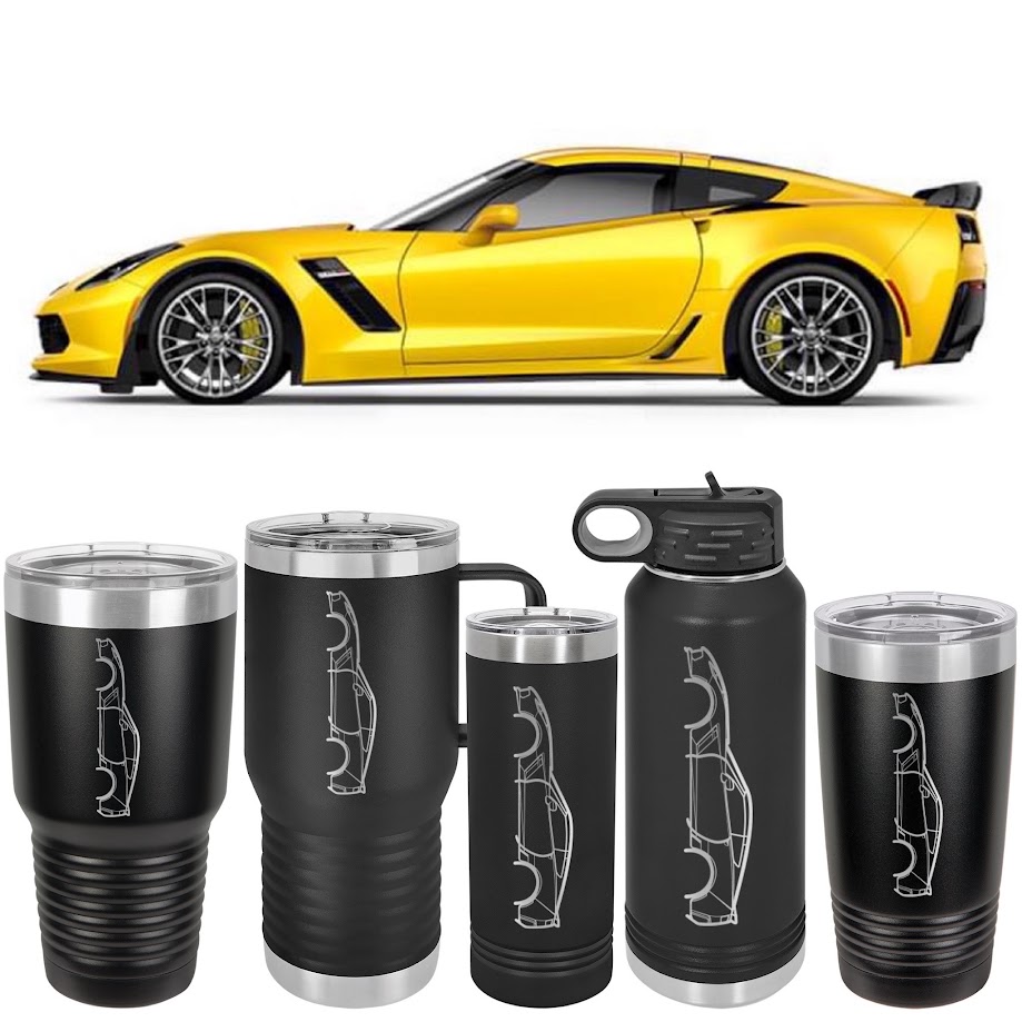 Elevate your daily hydration experience with our meticulously crafted Corvette C7 ZO6 Silhouette drinkware collection. Each piece is laser engraved to order, with the car silhouette etched onto black tumblers, creating a stunning silver metal color contrast that beautifully represents your connection to your Corvette C7 ZO6.
