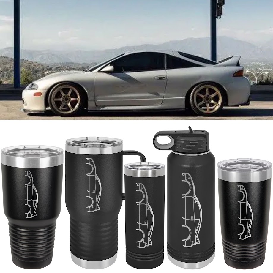 Elevate your daily hydration experience with our meticulously crafted Eclipse Generation 2 Silhouette drinkware collection. Each piece is laser engraved to order, with the car silhouette etched onto black tumblers, creating a stunning silver metal color contrast that beautifully represents your connection to your Eclipse Generation 2.
