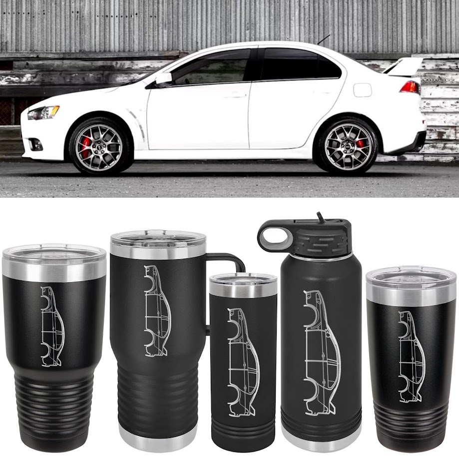 Elevate your daily hydration experience with our meticulously crafted Evolution X Silhouette drinkware collection. Each piece is laser engraved to order, with the car silhouette etched onto black tumblers, creating a stunning silver metal color contrast that beautifully represents your connection to your Evolution X.