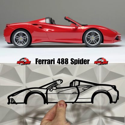This 488 Spider Silhouette wall art will give your office, room or garage a unique look that will catch attention to any racing, car enthusiast and will add a subtle touch to your area.