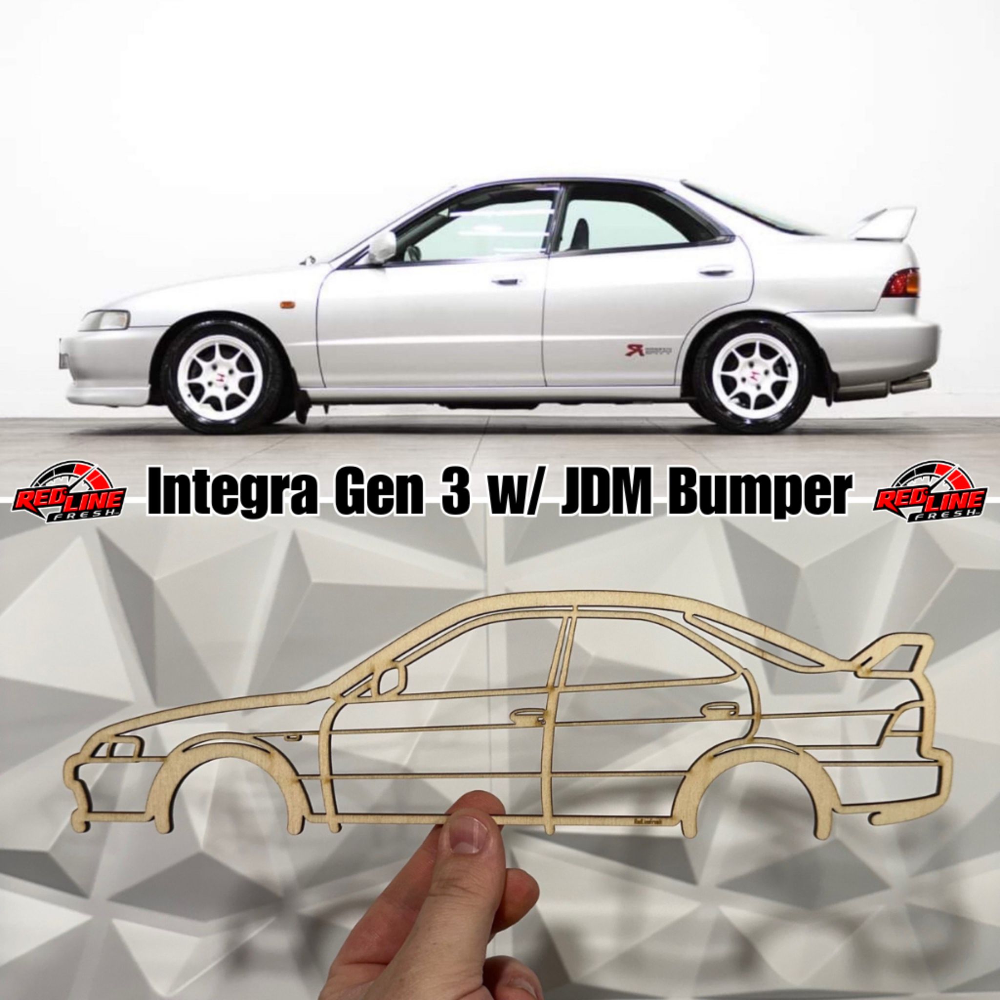 This Integra Generation 3 With JDM Bumper Silhouette wall art will give your office, room or garage a unique look that will catch attention to any racing, car enthusiast and will add a subtle touch to your area.