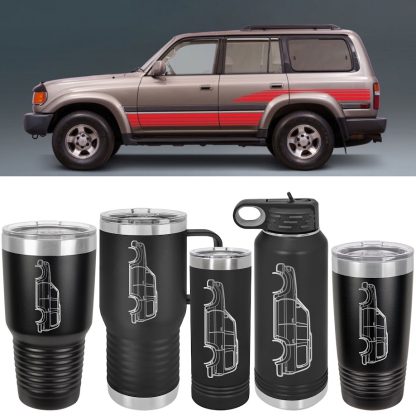 Elevate your daily hydration experience with our meticulously crafted Land Cruiser 80 Silhouette drinkware collection. Each piece is laser engraved to order, with the car silhouette etched onto black tumblers, creating a stunning silver metal color contrast that beautifully represents your connection to your Land Cruiser 80.