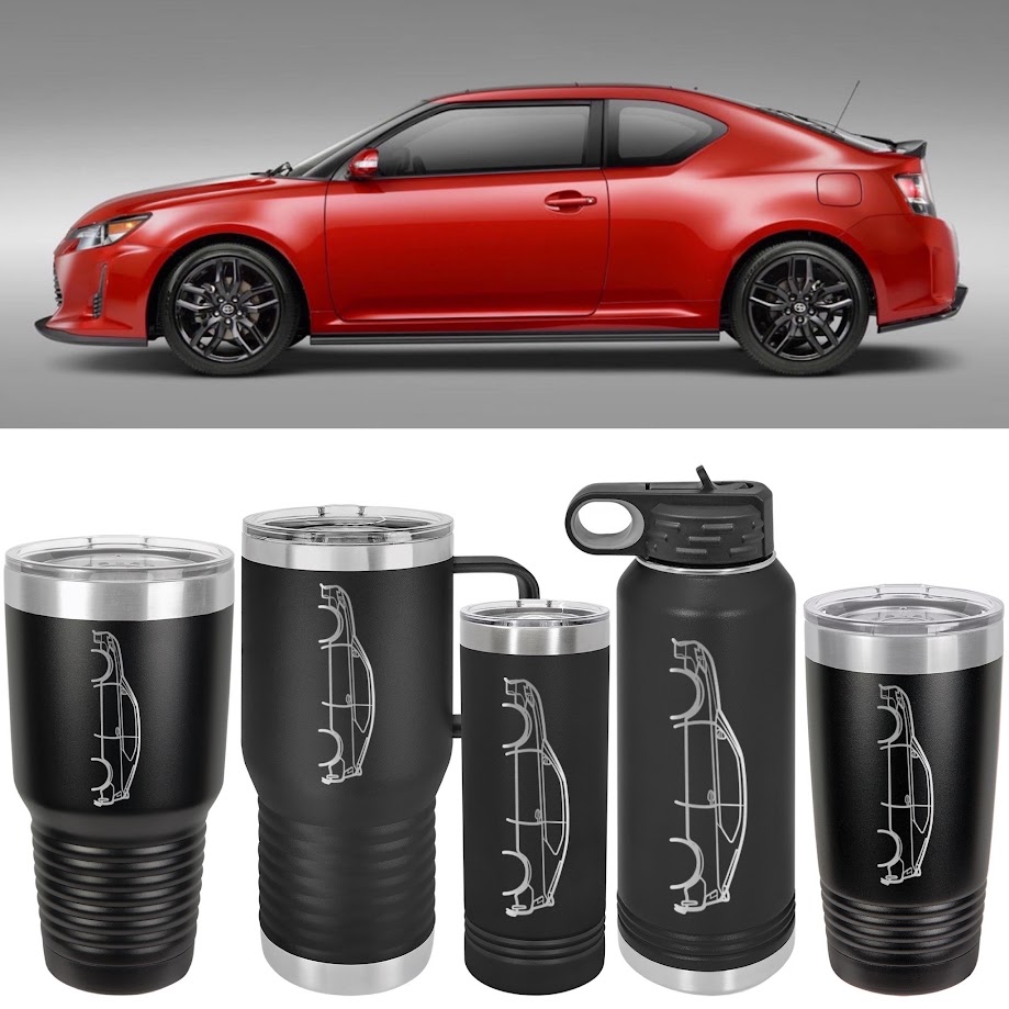 Elevate your daily hydration experience with our meticulously crafted tC Silhouette drinkware collection. Each piece is laser engraved to order, with the car silhouette etched onto black tumblers, creating a stunning silver metal color contrast that beautifully represents your connection to your tC.